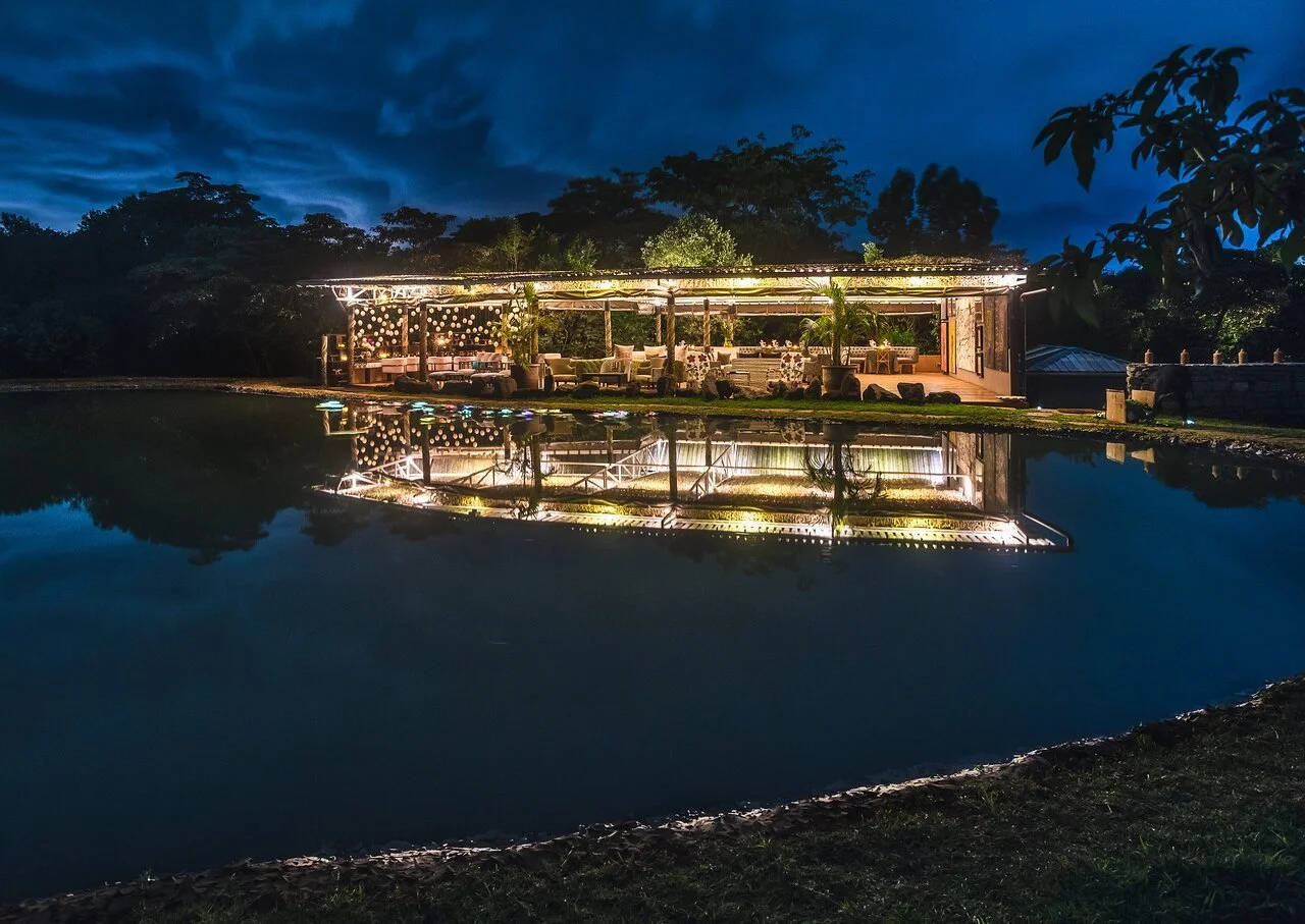 Evening wedding reception, dinner, and dancing at Muthaiga Club.